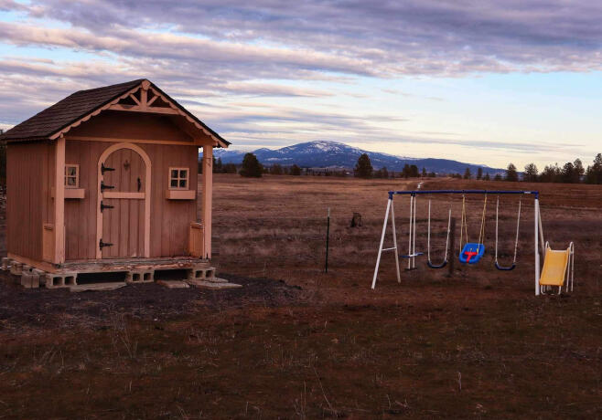 Our home sits on 13 beautiful acres in a quiet rural community, backed by 200 acres of DNR land filled with farmland, trees, and a stunning view of the mountains. In our backyard, we enjoy a fire pit, swing set, garden, and a custom-built playhouse—perfect for family time outdoors.