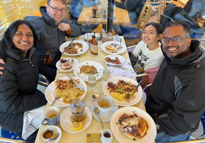 We are close to both sides of the family and see them often, enjoying good conversation, home-cooked meals and board games. Sanvi’s parents, brother, and sister live nearby in Colorado. Brian’s two sisters live in the Midwest. Brian’s dad and his wife live in Florida. We love spending time with them at home and on adventures such as hiking, going to the beach and traveling. We have two nephews on Brian’s side of the family, and one niece on Sanvi’s. We love going to their soccer and hockey games. It’s been so fun seeing their interests and personalities develop as they grow up.